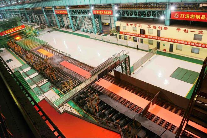 湘钢销售部负责人肖凌云介绍,湘钢近年通过“三改一扩”实现脱胎换骨:湘钢焦炉环保提质改造等项目,年减碳量达50万吨,钢铁料加工存储中心实现全流程自动化,宽厚板轧钢智慧中心建设完成后生产效率提升20%,年营收保持千亿元规模。